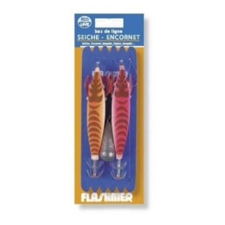 Bas de Ligne pret a pecher 2 TURLUTTES SEICHE ENCORNET ROSE/ORANGE
